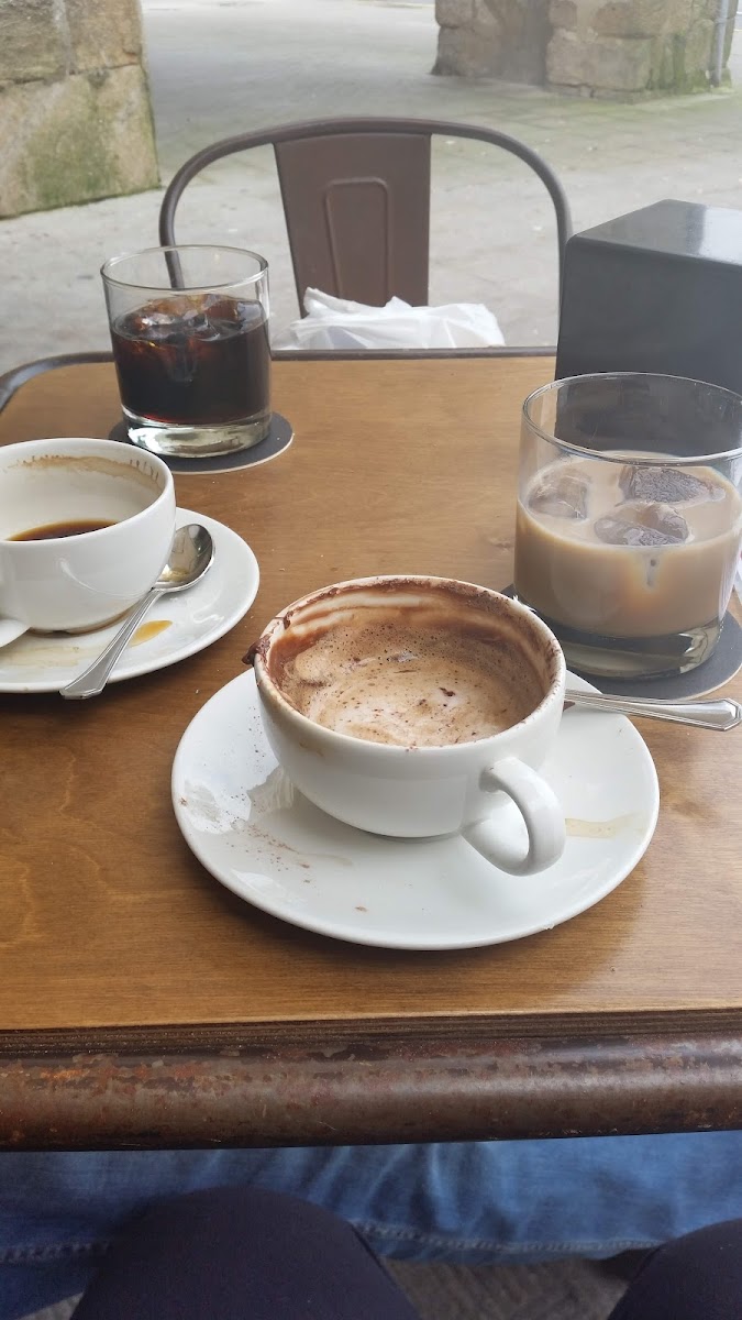 Cabalo de Pedra is a quietly comfortable café nestled on Rua da Porta da Vila in the heart of Muros, A Coruna. It’s the kind of spot where locals and visitors alike come to settle in for a while, whether it’s to enjoy a carefully crafted coffee or to escape the brisk coastal air by the cozy fireplace upstairs. The café’s atmosphere strikes a balance between casual and inviting, with a layout that encourages lingering — from the snug interior, warmed by glowing flames, to the option of sitting outside to watch the street life pass by.